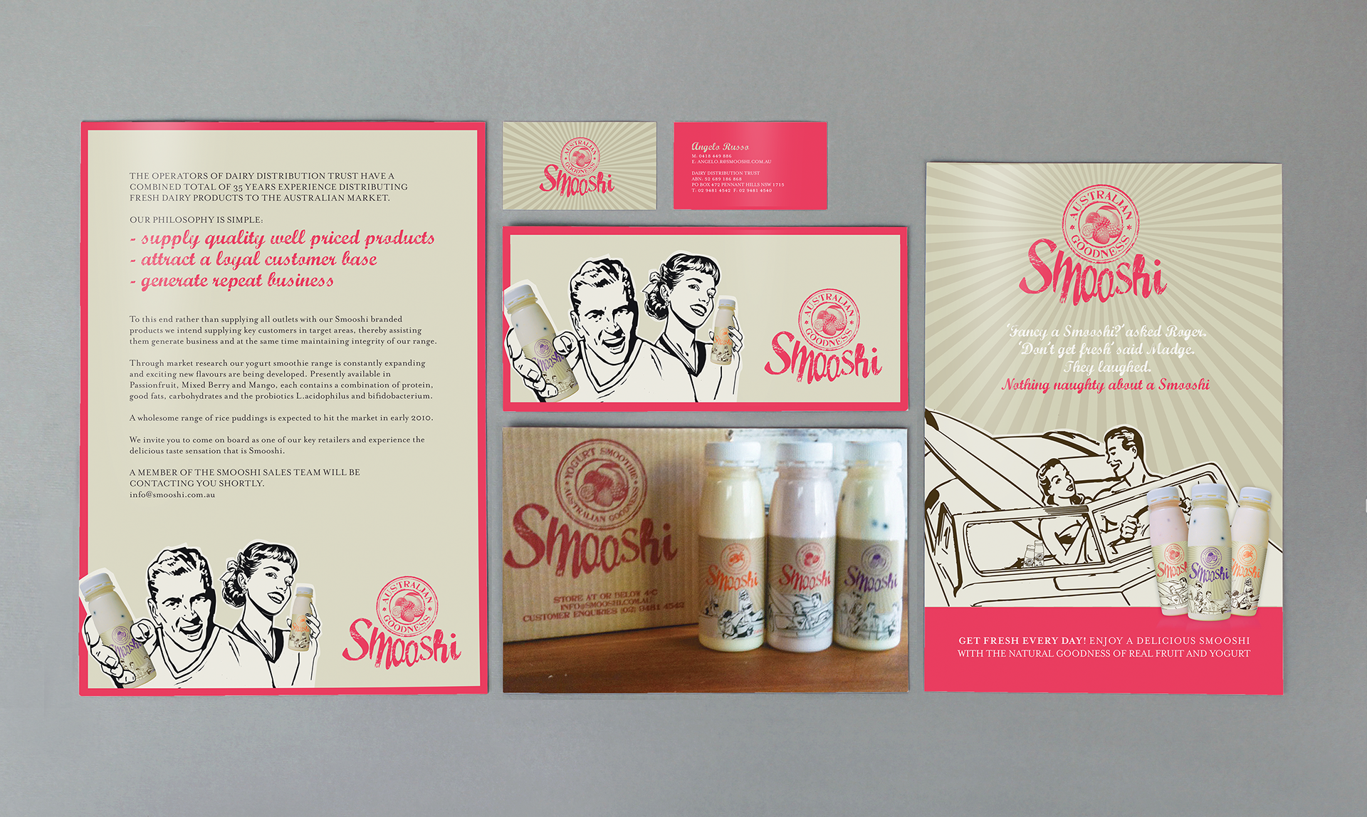 Brand, tagline and packaging development for start-up dairy drink company, Smooshi.