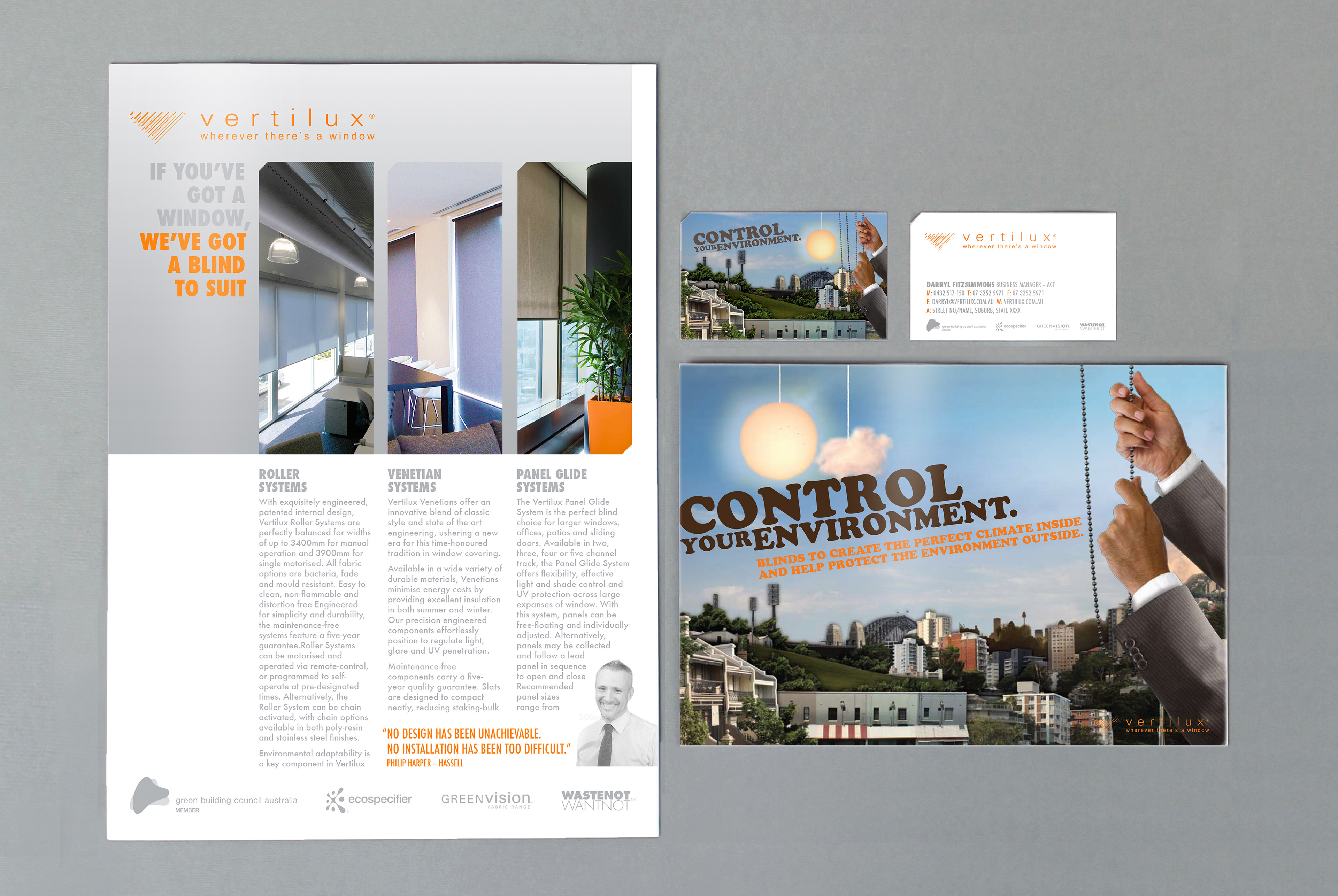 Rebranding for Vertilux, adapting a website refresh to printed collateral with design agency Republic of Everyone.